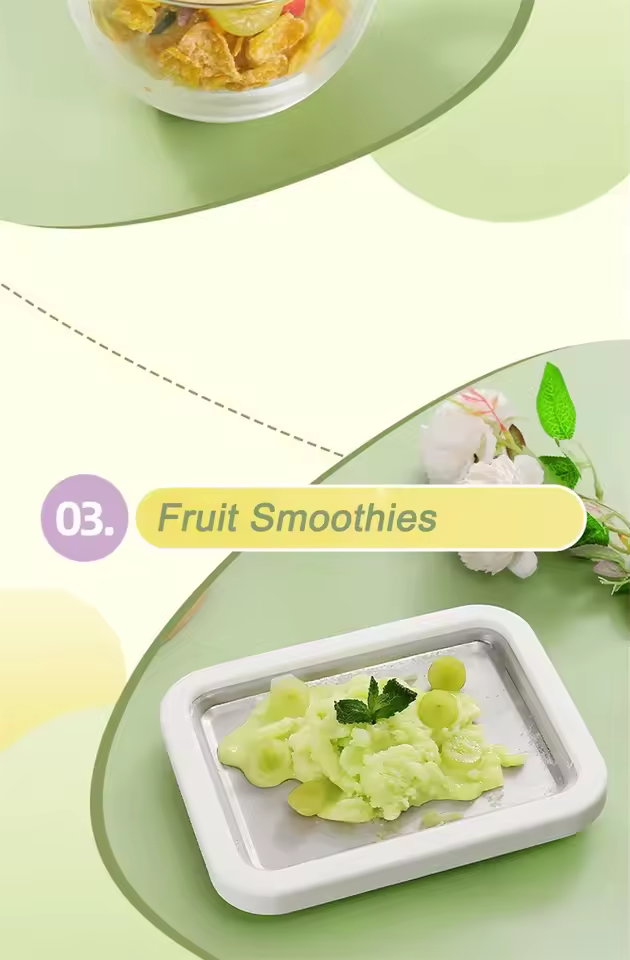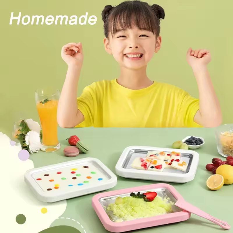 Description: Create delicious homemade ice cream, frozen yogurt, or fruit sorbet effortlessly with this sturdy stainless steel(ice cream pan)! Perfect for kids and families, this non-electric ice cream maker requires no batteries or electricity—just freeze the pan, add your favorite ingredients, and stir to make creamy treats in minutes. Premium Stainless Steel – Durable, food-grade, and rust-resistant for long-lasting use. Easy to Clean – Smooth surface wipes clean quickly. How to Use: Freeze the pan for 10-12 hours in advance. Pour pre-mixed yogurt, juice, or cream onto the cold surface. Stir gently with the scrapers until thickened. Scoop and enjoy your healthy, additive-free dessert! Great for: Homemade ice cream, frozen yogurt, fruit sorbet, baby snacks, or party desserts. Specifications: Material: Stainless Steel, PP Color: White, Green, Pink Size:22.5x17.5cm Quantity: 1 Ice Plate+2 Scrapers Package Included: 1 Pc Unplugged Ice Cream Maker Note: -Due to hand measure, the size may have 1-2 cm error. -Due to Different Monitor, the color may have difference. -Due to long shipping, the item may damage in transit, if the item damage, pls contact us firstly immediately before leave feedback, IFANYUO thanks for your understanding!